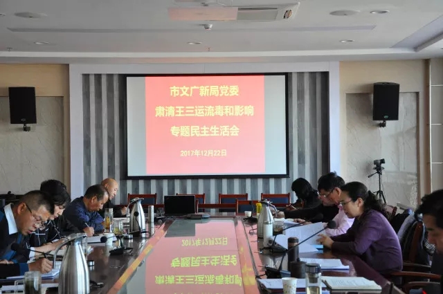 ? ?12月22日下午,市文广新局党委召开以“坚决全面彻底肃清王三运流毒和影响,恢复政治生态山清水秀”为主题的专题民主生活会。局领导班子成员参加会议并做了对照检查发言。全局其他副县级以上领导干部、局属各单位主要负责人列席会议。